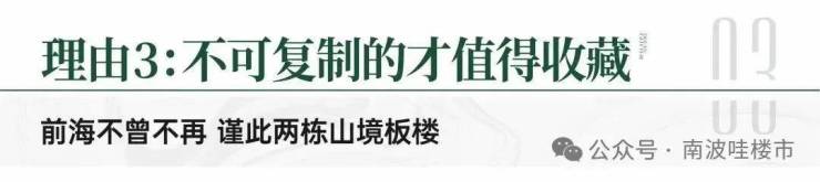 前海稀世藏品:深圳寸土寸金,板楼愈发难寻,在前海这片豪宅聚集地,板楼奢居更是凤毛麟角,成为塔尖身份象征。物以稀为贵,核心区纯粹低密板楼,卖一套少一套,层峯保值硬资产,且买且珍惜。
