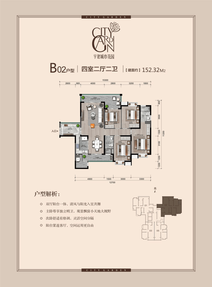 【建筑面积约152㎡ 四房二厅二卫】