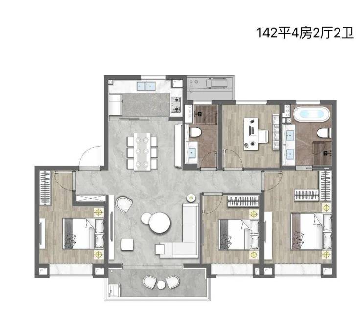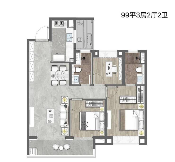 承重墙集中外置,室内轻质隔墙占比超60%,业主可自由合并卧室、拓展厅堂面积。如125㎡户型通过改造可变身为“3+1”明星户型,增加独立影音室。