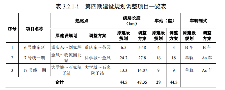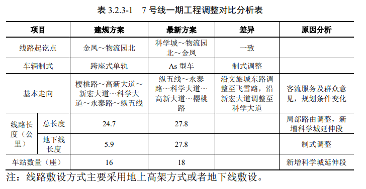 其中,7号线进行制式调整并增加延伸段,17号线进行制式调整,6号线进行路由调整,24号线跨渔溪河段由原来地下线敷设方式调整为高架跨越。