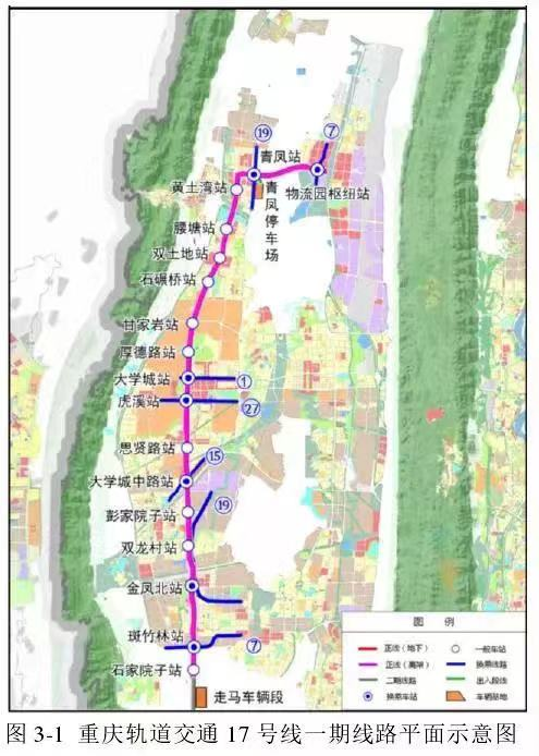 17号一期线线走向未变。2035年规划途经团结村、青木关、西部(重庆)科学城、金凤铁路辅站、江津双福等区域,为西永组团、陶家组团及江津地区重要联系线路,远景布局江津双福至江津德感。