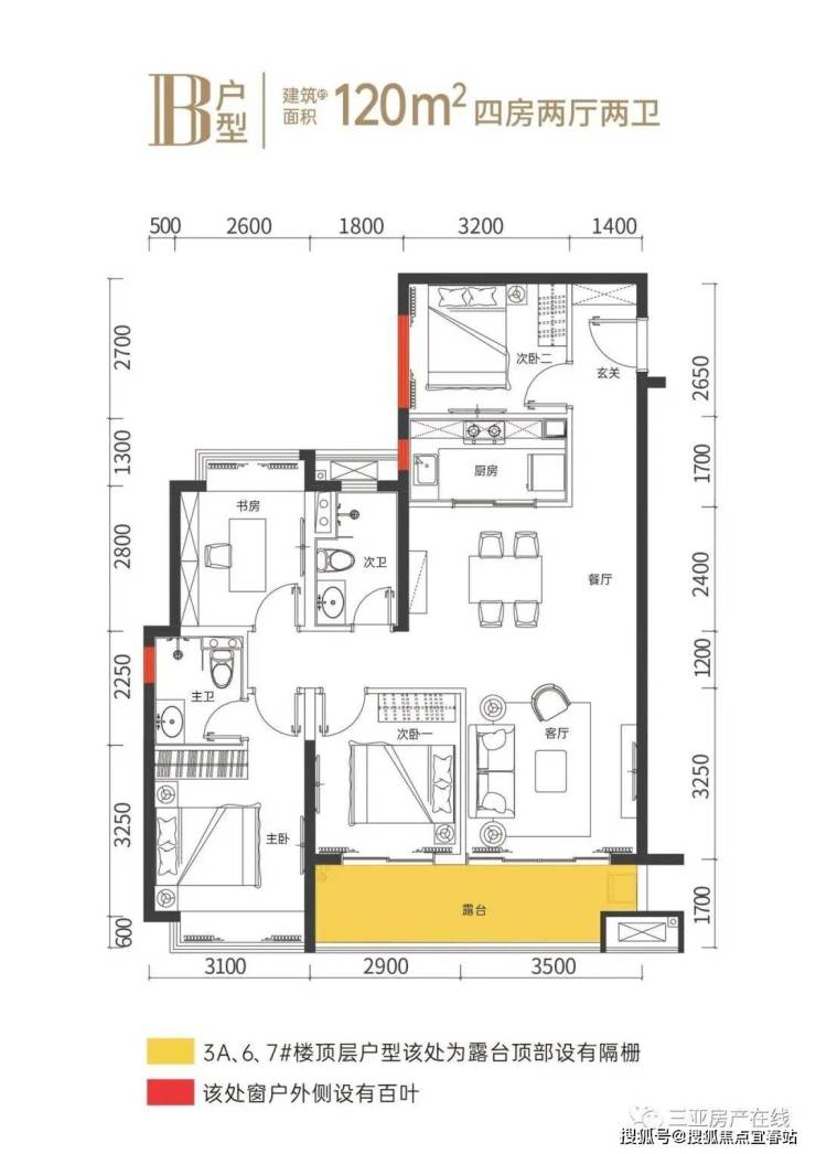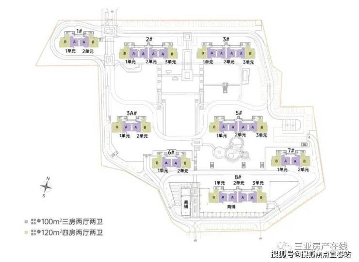 在售户型:建筑面积约100㎡三房两厅两卫、约120㎡四房两厅两卫