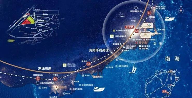 项目毗邻万宁高铁站,距离汽车站约3公里,距离环岛高速入口约2.3公里,立体交通路网,擎引高效便捷出行,接驳岛内外无界生活。