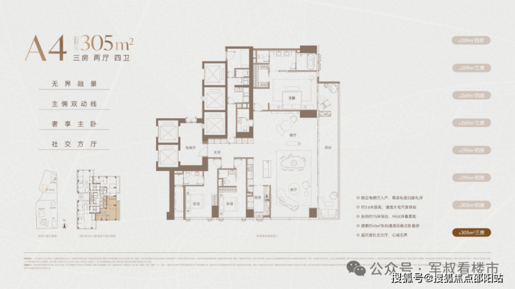 以下是官方公布的209-305㎡的两种方案户型设计图