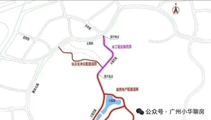 早在5月11日,官方就发布了聆湖路施工总承包公开招标,施工总工期为127天,也就是4个月左右完工。道路全长约418米,南接黄云路地块越秀地产配建道路,北止于大观街,道路等级为城市支路,规划红线宽20米,双向两车道。