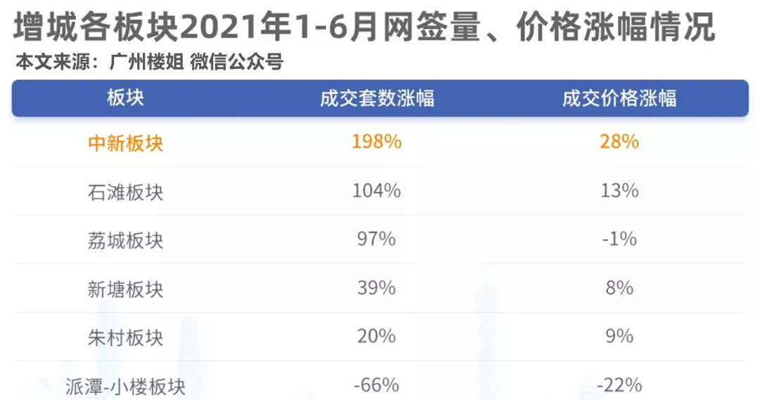 回答:2021年上半年,中新无论是成交套数、还是成交均价,同比涨幅都是整个增城最猛的板块。其中,其成交套数,相比2020年同期,直接翻了近2倍。