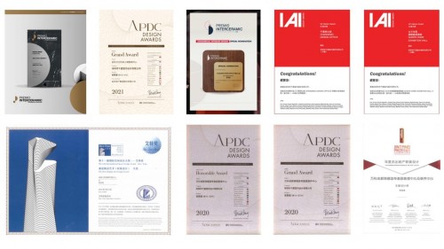 2021 Design Awards List:北美PI设计大奖-室内设计类·杰出室内设计奖 、IAI全球设计奖(室内奖)办公空间银奖、APDC亚太设计精英赛公共空间大奖、APDC亚太设计精英赛软装陈设大奖、IDEA-TOPS艾特奖较佳陈设艺术(软装设计)大奖、金堂奖年度地产软装设计奖、北美PI设计大奖-室内设计类·商业特别提名奖、IAI全球设计奖(室内奖)商业空间优秀奖中国金茂优秀供应商大奖
