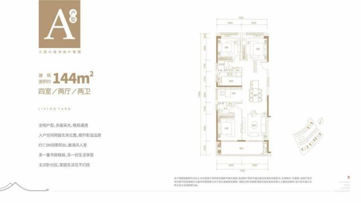A户型:144㎡大4房,改善首选。