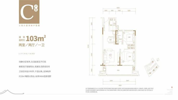 C户型:103㎡奢阔2居,生活更自由。