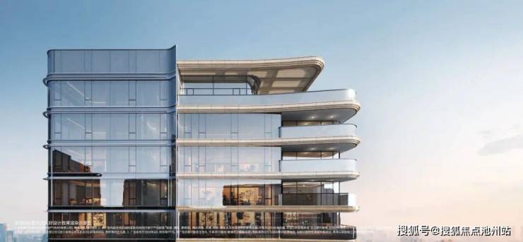 外立面采用弧线转角阳台+蓝灰色钢化LOW-E玻璃,公建化立面拥有超高窗墙比。同时,大量曲线元素的运用,不仅造价昂贵,而且极具辨识度,成为区域的颜值担当。
