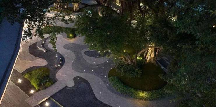 小区有 下沉式广场 、 退台空间 、 城市休闲草坪 、 儿童活动广场 、 登山体验步道 等,创造绿色生态、时尚品味的商业空间。