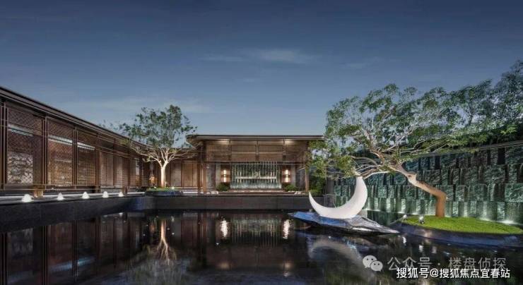 光明唯一沉浸式浮光水院,汉白玉原石打造“心湖之月”+斜飘冬青等;