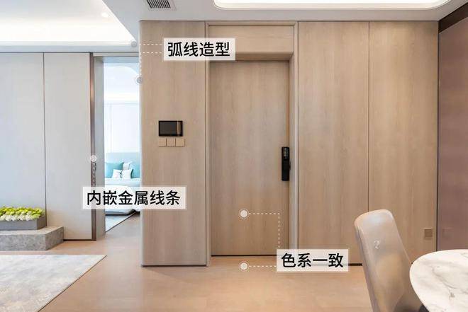 开启入户门,室内空间色调又与电梯厅高度统一,观感一气呵成。