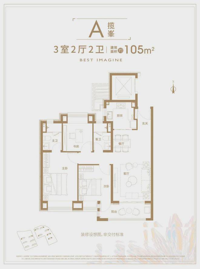 建面约105㎡阳光三房,南向三开间,生活向阳;搭配观景大阳台,宽境双厅设计,关于家的理想就此展开。