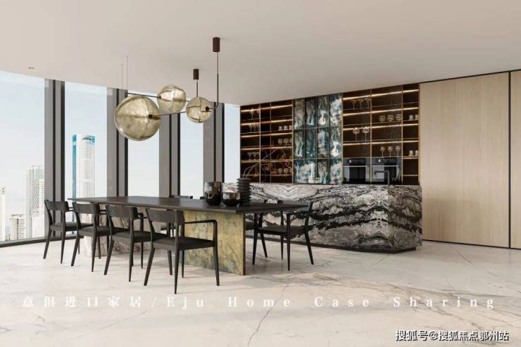 空间规划采用模块化设计理念,生活区、社交区、工作区通过智能动线串联。全景落地窗设计将自然光效与江景资源引入室内空间,270度环幕视域配合层峰社交场景,实现商务接待与家庭聚会的无缝切换。功能配置方面,集成书房、雪茄吧等多元场景,打造精英圈层的私域社交矩阵。