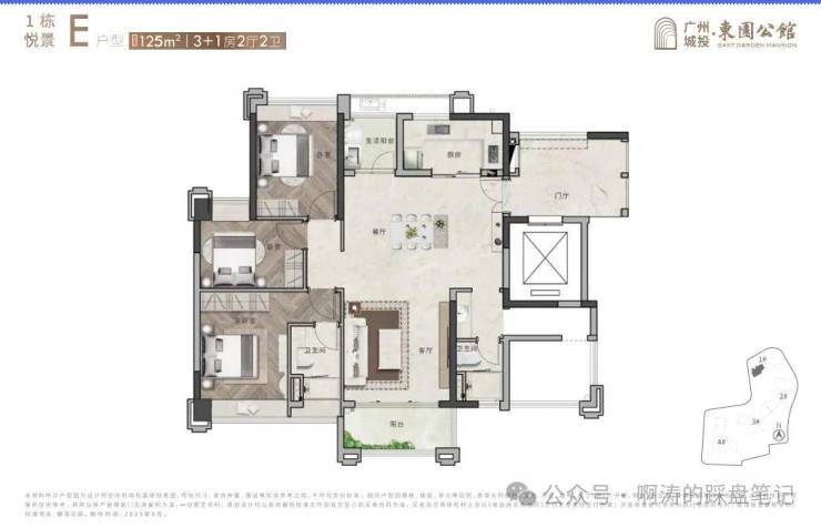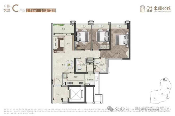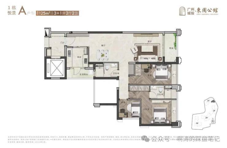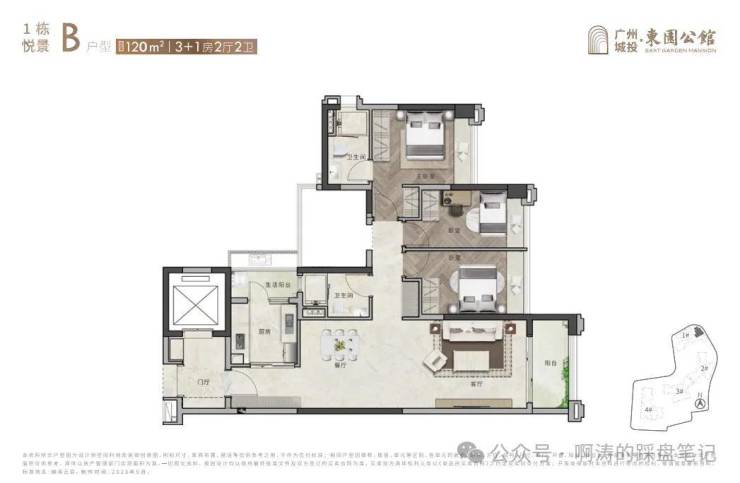 项目共 4 栋,仅 1#、2#、3# 对外销售,均为 21 层小高层,专梯专户、电梯直接入户,归家兼具私密与仪式感。其中 1# 五梯五户,临近万福路,涵盖 91-125㎡三至 3+1 房共 5 个户型;3# 位置更优,主打 132-178㎡大户型四房及三房。