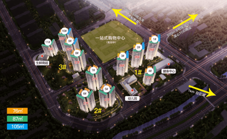 其中可到聚龙站换乘--440亿白云站TOD,这里将规划实现1轻轨+2高铁+7地铁的大型交通枢纽,便捷串联大湾区。