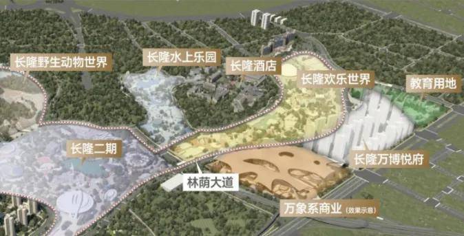 主要原因在于,长达近2公里的超级地块,把分隔的长隆旅游大IP+万博商务区两大板块缝合起来。