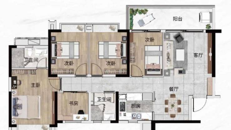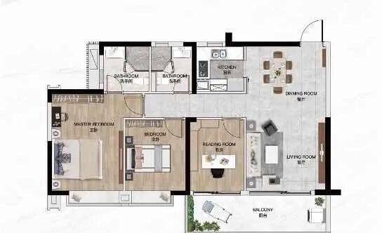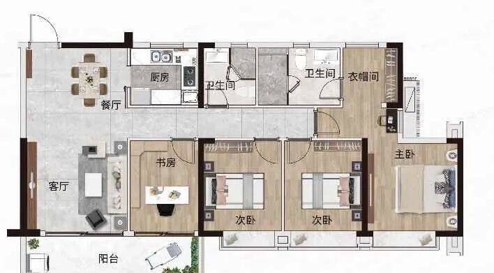 💥大三房卧室配置,4开间朝东南,13米超大开间