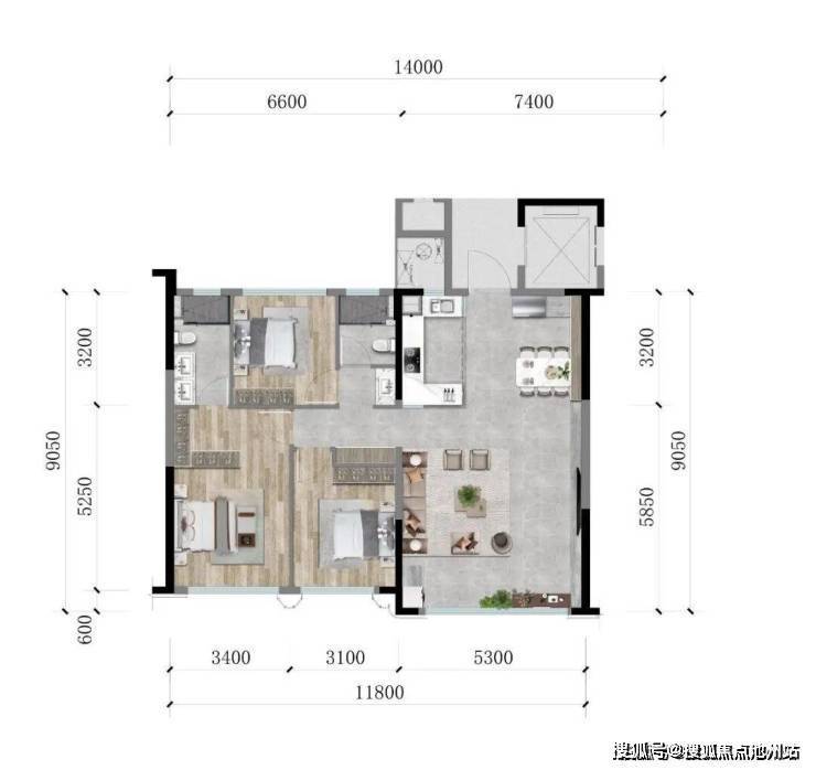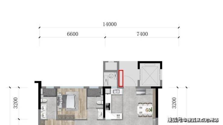 ---南侧次卧的面宽做到了约3.1米,进深最大可以做到4.0米,这样的进深,比许多传统首改类户型的主卧要大,摆1.8米大床也没问题。