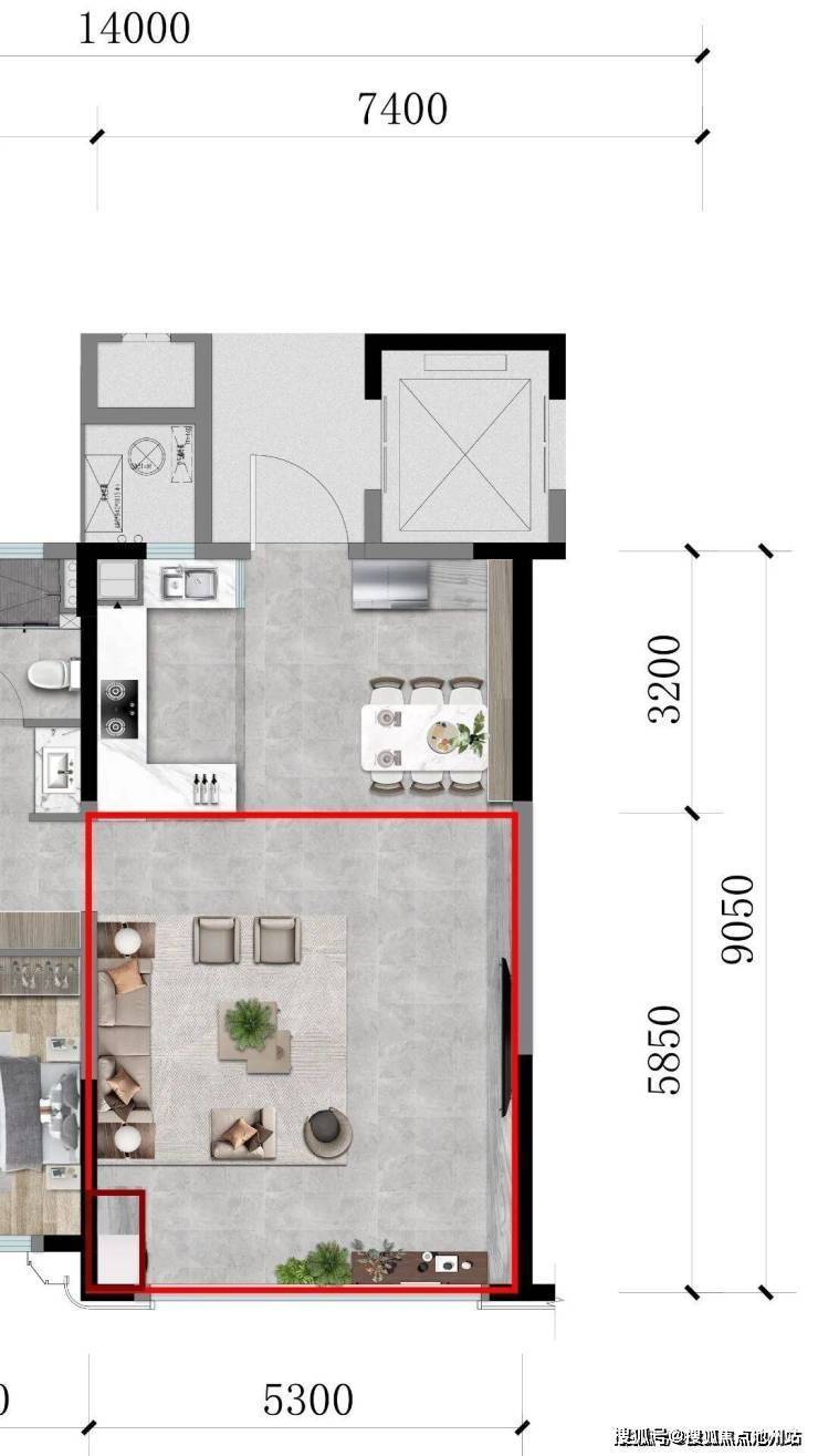 ---纯客厅面宽5.3米,可以与传统商品房建面约160方以上户型相媲美。另外,客厅与阳台之间做了无柱网处理,接近6米的进深空间,可以让业主根据自身需求偏好进行灵活装修:如果要功能多样,可以把阳台单独划出;如果要空间阔绰,可以把阳台并入,然后在角落做一个隐藏式家政空间:
