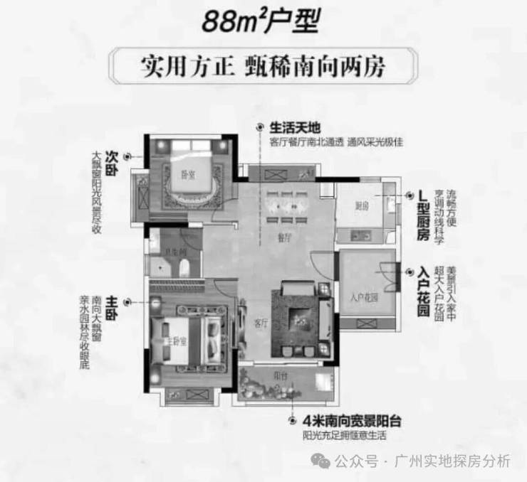 洋房全明格局,80-88㎡南向两房带入户花园,139㎡四房双套间;