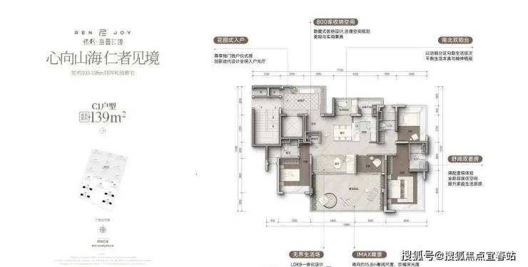 项目总建筑面积约16万平方米,容积率为1.6,规划18栋住宅,共计834户首层整体无住宅、全架空。主力户型建面约105-158平方米,车位配比约1:1.2,精装交付。层高约3.1-3.3米,户型南北通透、全明格局。社区内设多功能架空层,层高4.2-5.4米,致力于打造全龄化无界社区。