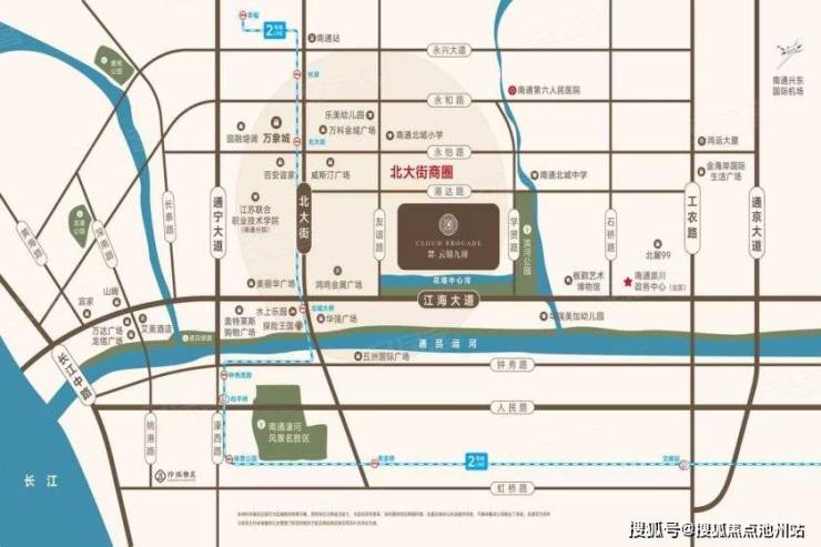 距离地铁2号线北城大桥站仅约500米,南侧紧邻江海大道高架等城市主干道,在项目周边三公里的范围内,汇聚了多个商业综合体。万象城、北翼玖玖广场、圆融堤调、百安谊家、万科金域广场、南通探险王国等