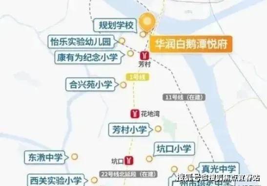 白鹅潭悦府距离地铁芳村站约400米,片区未来1号线、11/22号线(在建)、以及规划中的28号线等4条地铁交汇,业主可以直达越秀、天河、海珠,都算是非常便利。