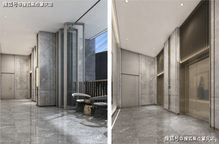 智慧梯控,日立电梯快速直达,轿厢净高2.6米,享受奢阔私密的垂直空间。整体格调以高级灰配色简约大气彰显质感,融合纹理精美细腻的墙面、地面铺装,让归家的每一秒等待都精致美妙。