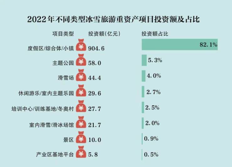 不过,由于滑雪场建设投入大、模式重,加之滑雪场多为“开一季,吃一年”模式,盈利始终是一个难题。据了解,北京周边雪场落差在200米左右,而崇礼、松花湖、北大湖等大众雪场的落差在400米-500米。雪场之所以集中在上述落差,原因在于成本相对可以接受。一方面,管线需要沿线铺设,多级加压打上去造雪。据悉,北京南山滑雪场的雪道面积为40万平方米,需要40台造雪机,崇礼的雪场造雪机数量多达200-300台。另一方面,雪道建设也需要高额资金,并且需要持续投入,一公里雪道的成本都非常高昂。从海外经验来看,滑雪度假是雪场的主要商业模式之一,即集合滑雪、度假和休闲等多功能于一体,而此类模式在国内基础仍然较为薄弱。不过,近年来度假型项目的投资也在逐步增加。据中国旅游研究院统计,2022年冰雪旅游度假区/综合体/小镇类项目投资额达904.6亿元,占总投资的82.1%,而2018-2021年为60%。