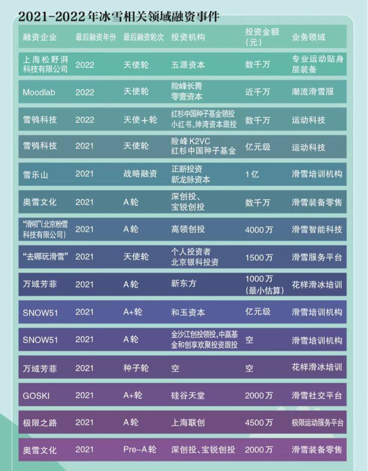 在此背景下,室内滑雪场承担起了日常培训的任务。目前,融创旗下广州融创文旅城和无锡融创文旅城、复星旅文旗下太仓复游城·太仓阿尔卑斯国际度假区等,均以室内滑雪场为特色。去年4月,融创雪世界正式更名为“热雪奇迹”,拟发力室内外雪场轻资产布局,聚焦于滑雪技能全链路成长教学体系,目前已运营有7个室内滑雪场和3个室外滑雪度假区。今年1月4日,融创文旅集团与北京市昌平区人民政府签约,热雪奇迹将落地昌平冰雪文旅城。冰雪相关企业中,近年来包含培训类业务的企业融资情况也较为活跃。据不完全统计,2021年间,相关企业共发生7起融资,多集中于A轮和A+轮。由于5岁至7岁是儿童冲刺冰上运动难度的黄金期,故少年儿童成为冰雪培训的主力人群之一。据雪乐山CEO吕忠栋介绍,室内滑雪主要的受众是以培训为主,培训的对象是5到12岁,也是最受欢迎的市场人群。