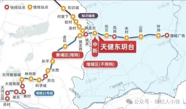 地铁:21号线中新站直达,快线3站到天河公园,慢线串联科学城、知识城