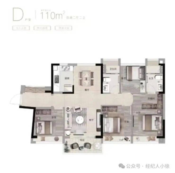 110㎡四房:全明格局,动静分区,满足多孩家庭