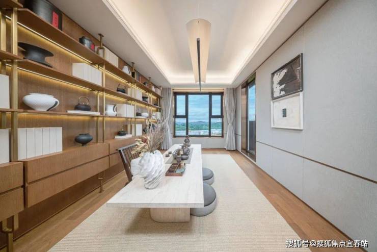 再搭配上12米宽的大面积落地玻璃,增加室内光亮的同时,还可以更好欣赏窗外的风景,最大程度实现了“引景入室”。
