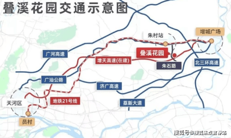 此外,项目位置上紧邻黄埔区,周边有多条高速路,在建增天高速,距离市区仅一集电视剧时间的车程。值得一提的是,项目门口还有公交站可接驳地铁21号线朱村站,地铁快线1站即到黄埔,5站快速抵达天河,非常便利。