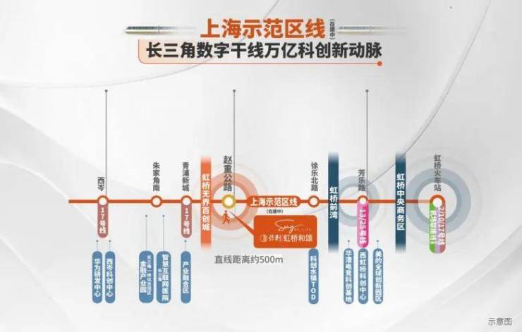 《上海发布》最新公布的相关信息,长三角生态绿色一体化发展示范区门户线,亦是大虹桥科创产业核心骨干线——示范区线预计将于2026年竣工,直线距离赵重公路站仅约500米的保利虹桥和颂,2站前湾、3站虹桥枢纽、5站华为基地,比肩地铁2号线能级,接近地铁两倍时速,一线串联多个高能级科创产业高地,大虹桥、长三角一体化示范区等城市重要发展节点,未来超越想象。