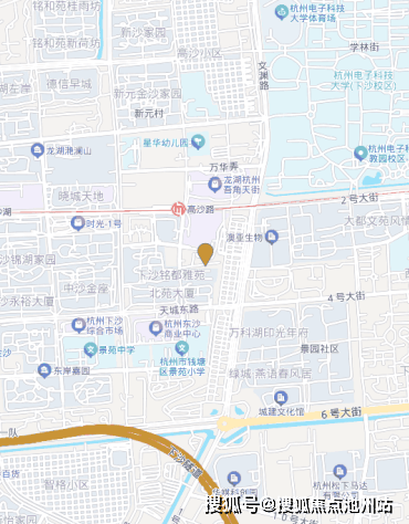 直线3km范围内有40个幼儿园;8个小学,如杭州电子科技大学附属第一小学、杭州市下沙第二小学、杭州市钱塘区景苑小学、杭州市钱塘区学林小学、杭州市钱塘区金沙湖实验学校等;6个中学,如景苑中学、杭州市实验外国语学校、杭州电子科技大学附属中学、杭州市实验外国语学校(高中部)、杭州实验外国语学校中学部等。