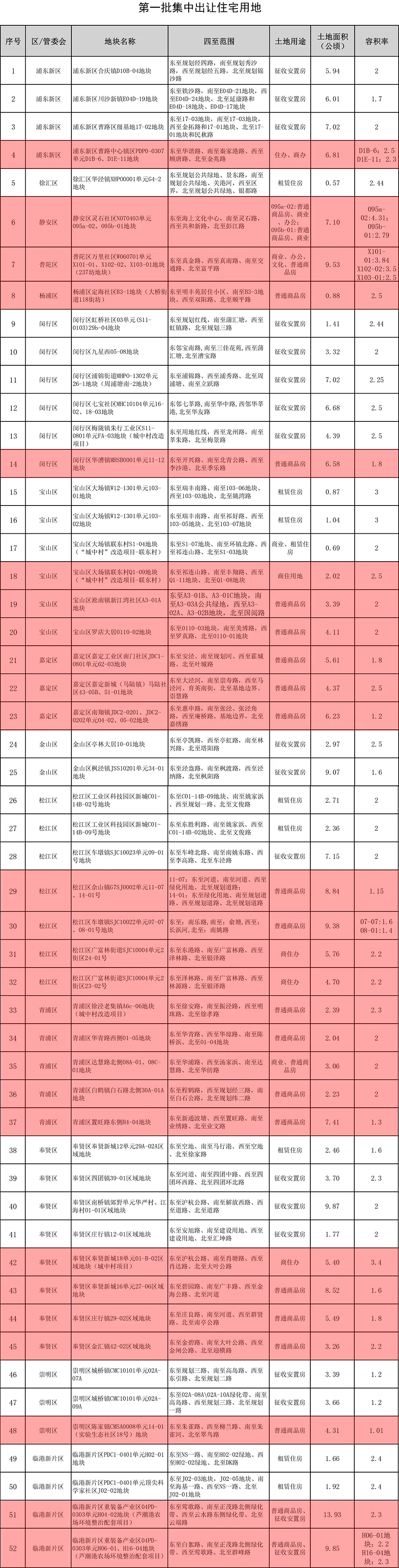 今年上海排名前列批宅地集中出让公告将于5月17日-5月20日发布,届时将推出住宅用地约52幅,土地面积约250公顷。
