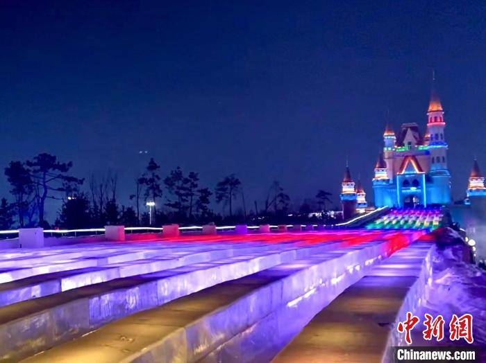 当晚,长春市重点打造的世界级冰雪主题乐园——“长春冰雪新天地”流光溢彩,该园占地超156万平方米,建设冰雪景观108座。中外游客徜徉其间,宛若走进童话世界。