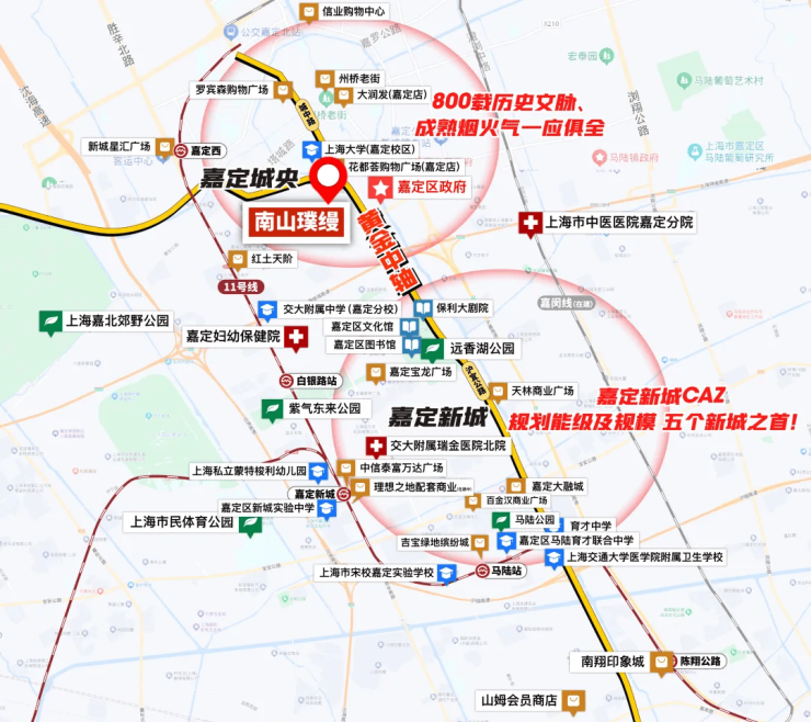 11号线嘉定西站直线距离约2.4km,嘉闵线嘉戬公路站(在建中,具体以政府规划为准)直线距离约2.5km。双线轨交,高效通勤往来,一线直抵真如、徐家汇、前滩等CBD商圈。车行近享上海绕城、沪嘉高速、嘉闵高架及沪宜公路、沪翔高速等纵横路网,畅享虹桥枢纽及国家会展中心。