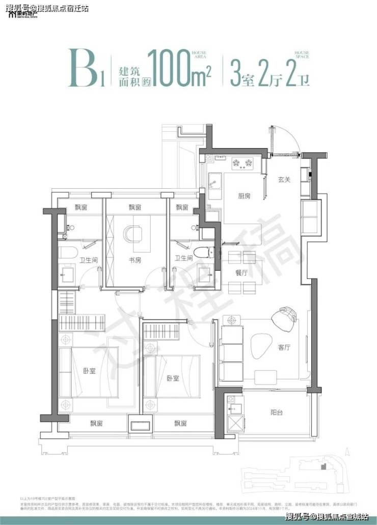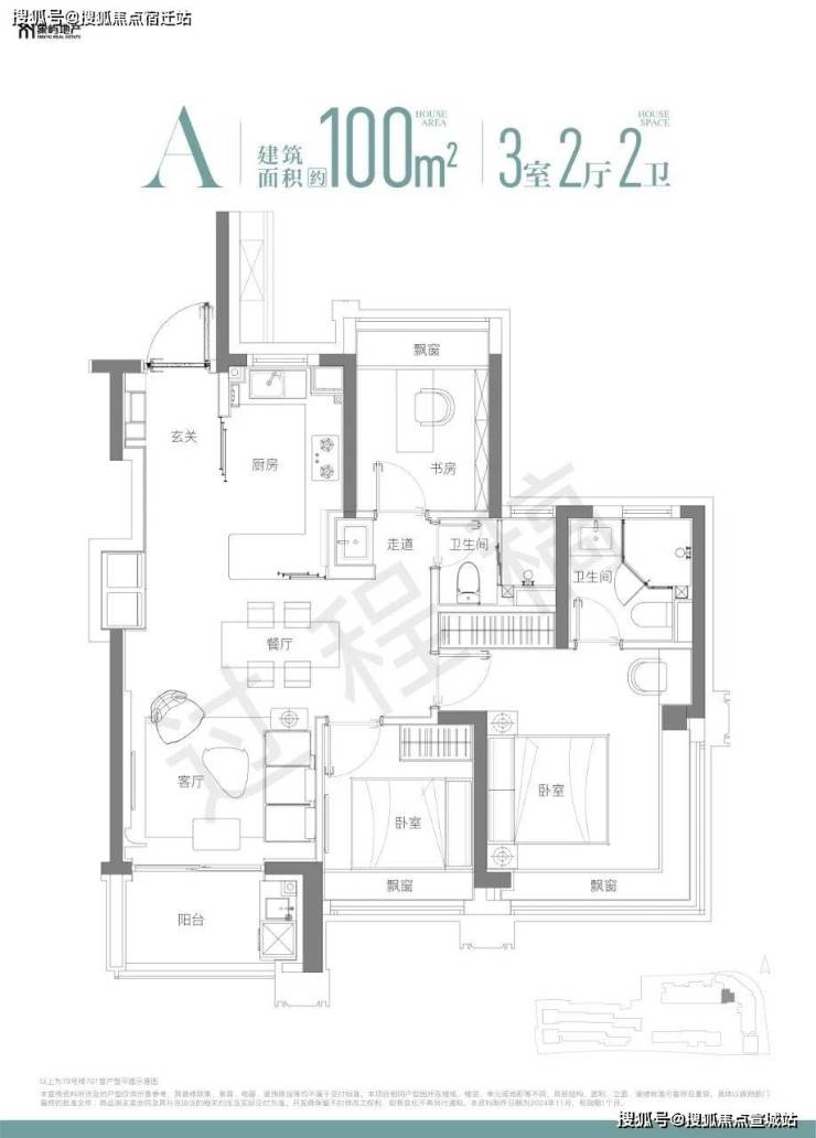 项目高层产品均为100㎡左右3房户型,一梯6户: