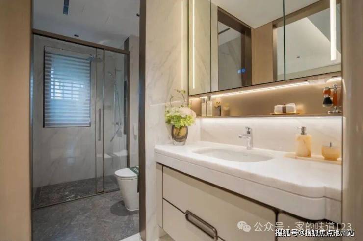 细节上,卫生间电热毛巾架、卧室墙面硬包……非常用心,体贴入微。