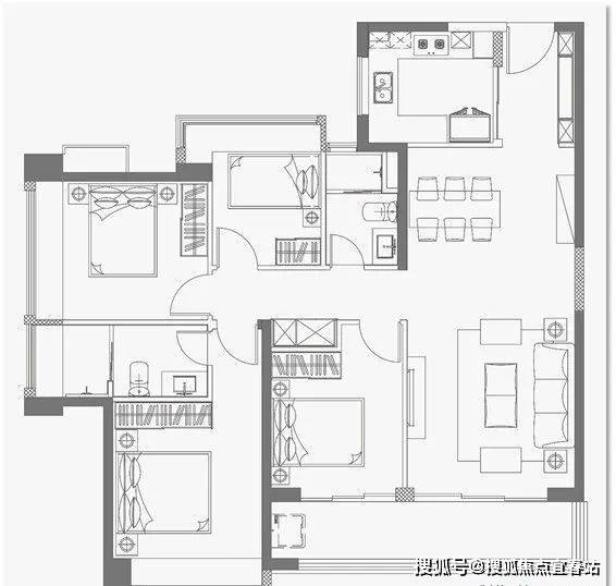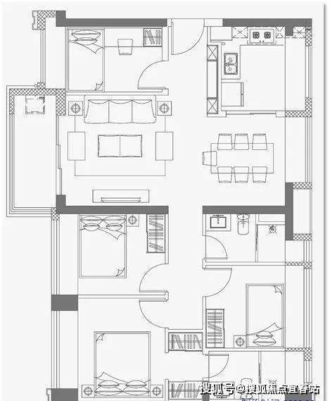 117㎡四房两卫:总价615-645万元(高层横厅户型)