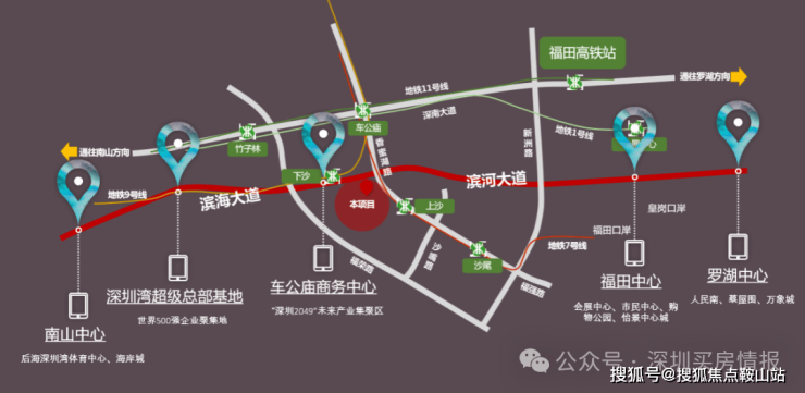 一刻钟集萃万象,尽享深圳绝无仅有的成熟业态,福田CBD、车公庙、香蜜湖、欢乐海岸、海岸城、深圳湾、深圳湾体育中心等