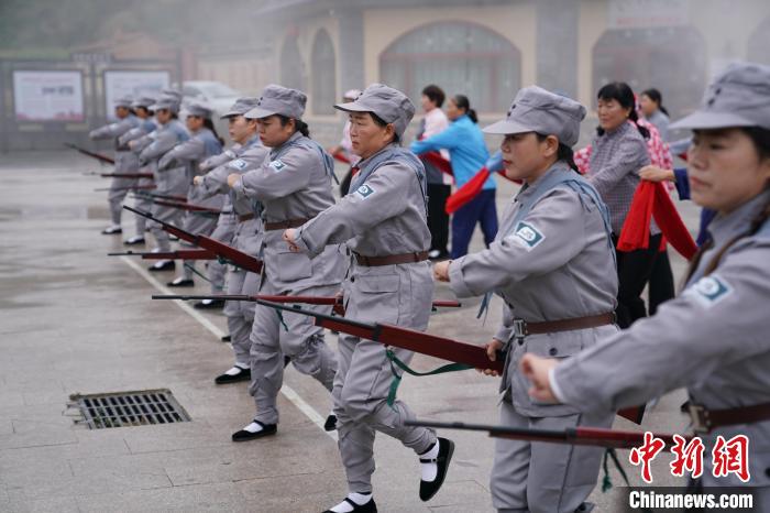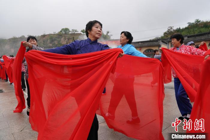 中新网北京10月14日电 (记者 苏丹)山西省灵丘县东河南镇“含水人家”是由含水村移民搬迁而来的新村。由附近160余名女性村民组建的舞蹈队在此上演红色实景演出《平型关记忆》,成为振兴乡村旅游的新亮点。