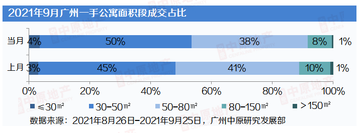 本月主力面积段30-50㎡的公寓成交占比扩大在50%,50-80㎡成交占比小幅缩减至38%,其余面积段公寓占比变化不大。