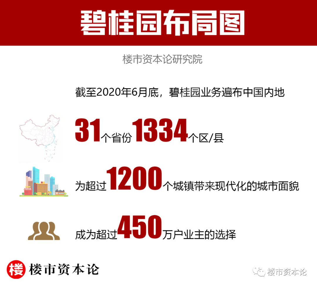 作为中国新型城镇化进程的身体力行者,碧桂园致力于提升当地人民的居住条件和生活品质,截至2020年6月底,碧桂园业务遍布中国内地31个省份1334个区/县,是行业内布局最广泛的房企,成为超过450万户业主的选择。