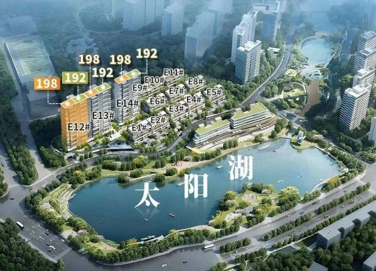 三期约190㎡大平层都是全南向一线望太阳湖,距湖最近约40米