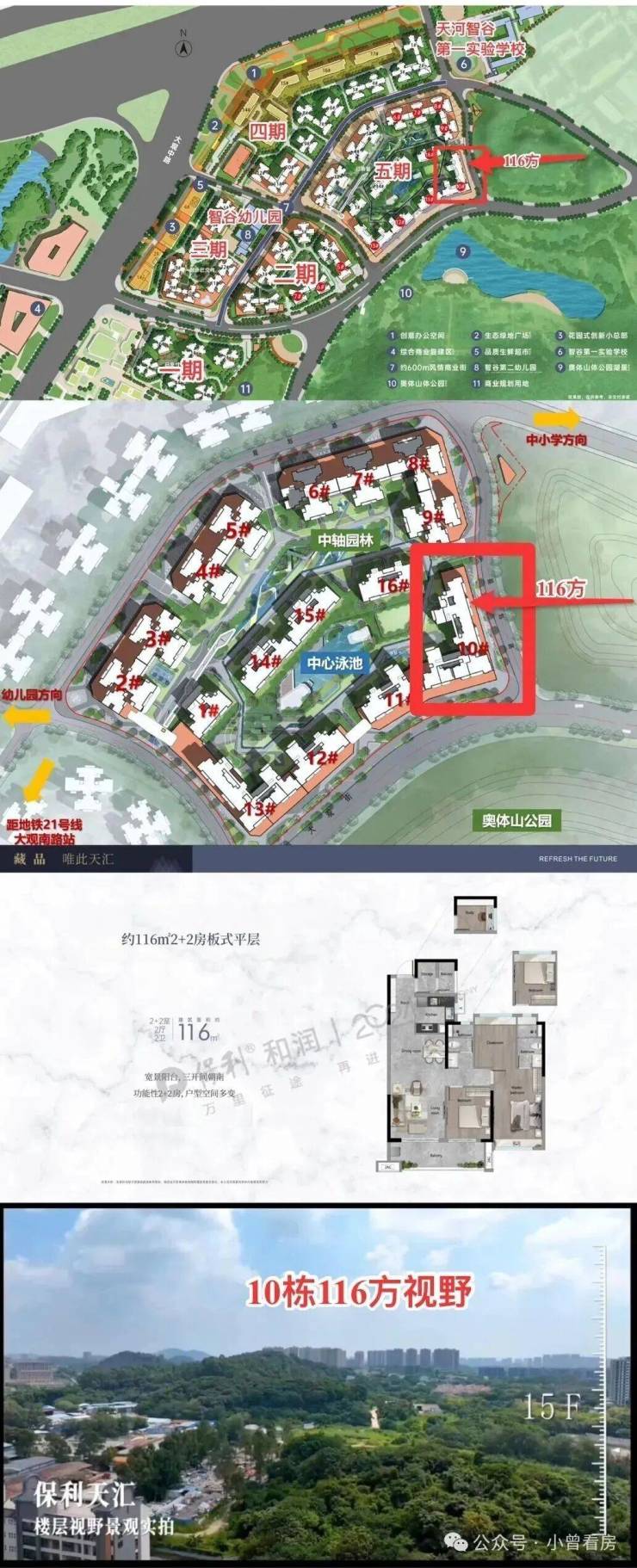 保利天汇新的组团,也是整个项目的规模最大的楼王组团。由16栋纯住宅组成,没有公寓和商业,居住属性更纯粹。新组团背靠奥体山林公园,拥有内外一线双园林,最具自然资源,舒适度最高